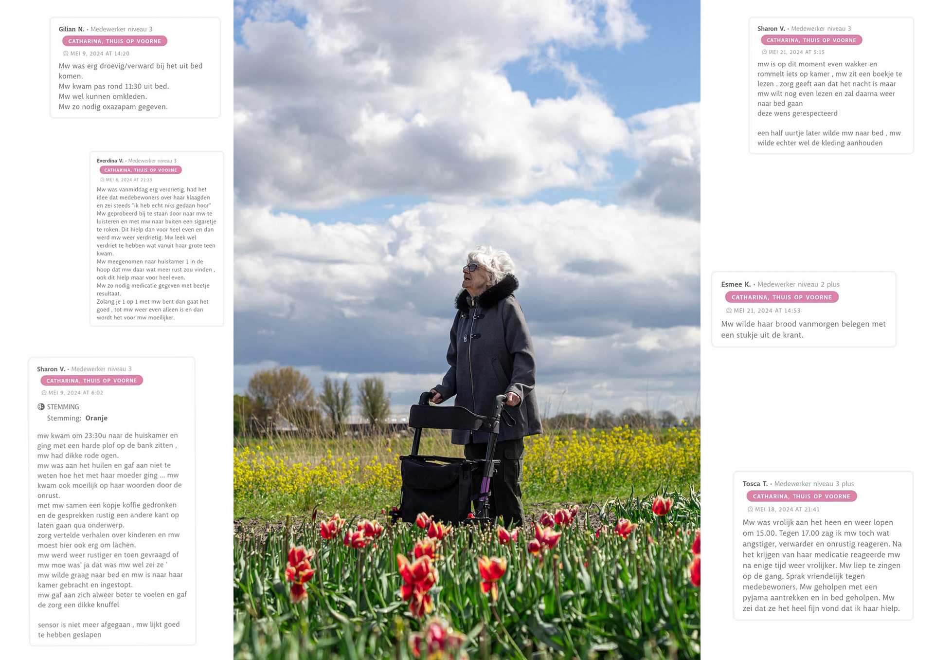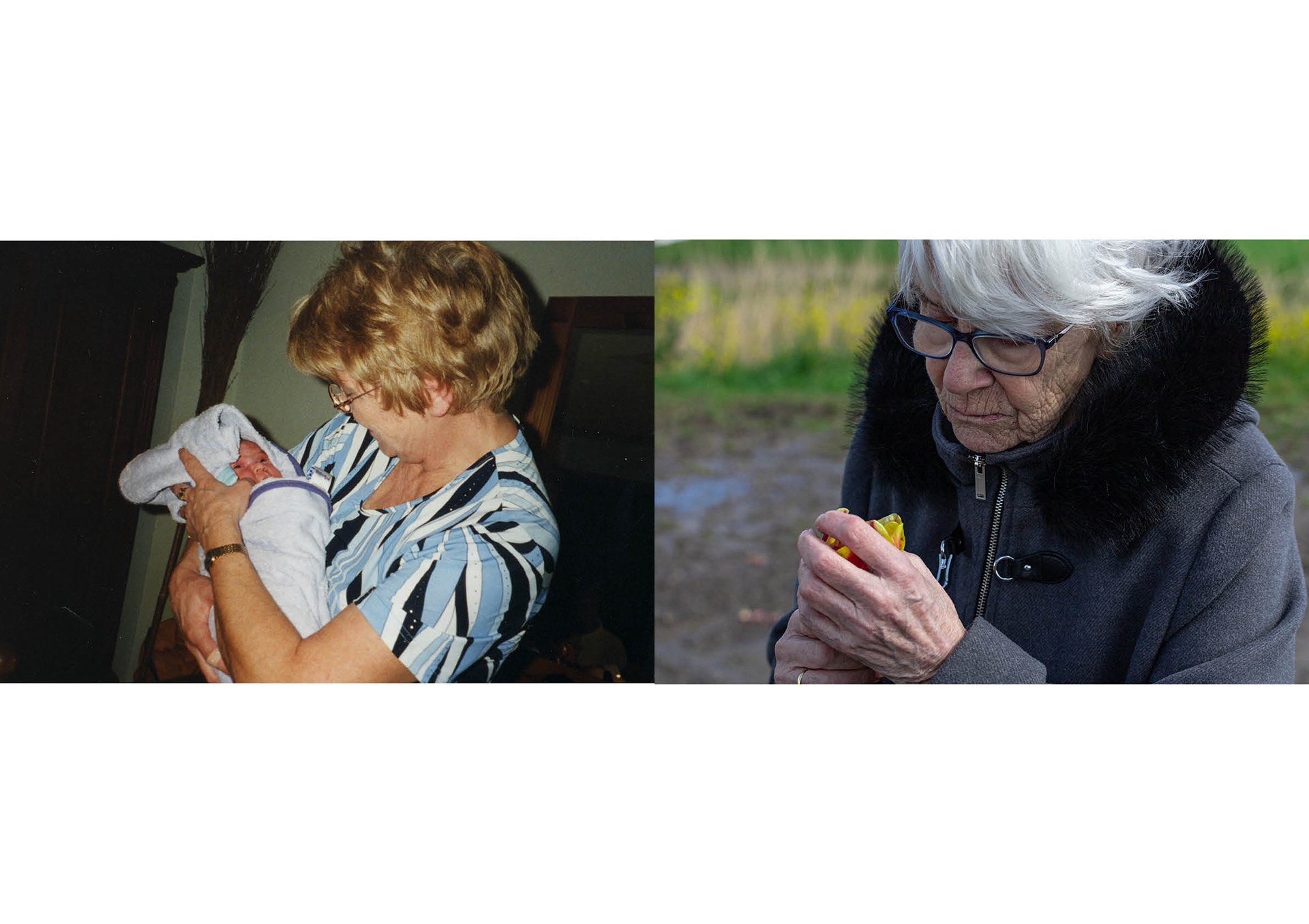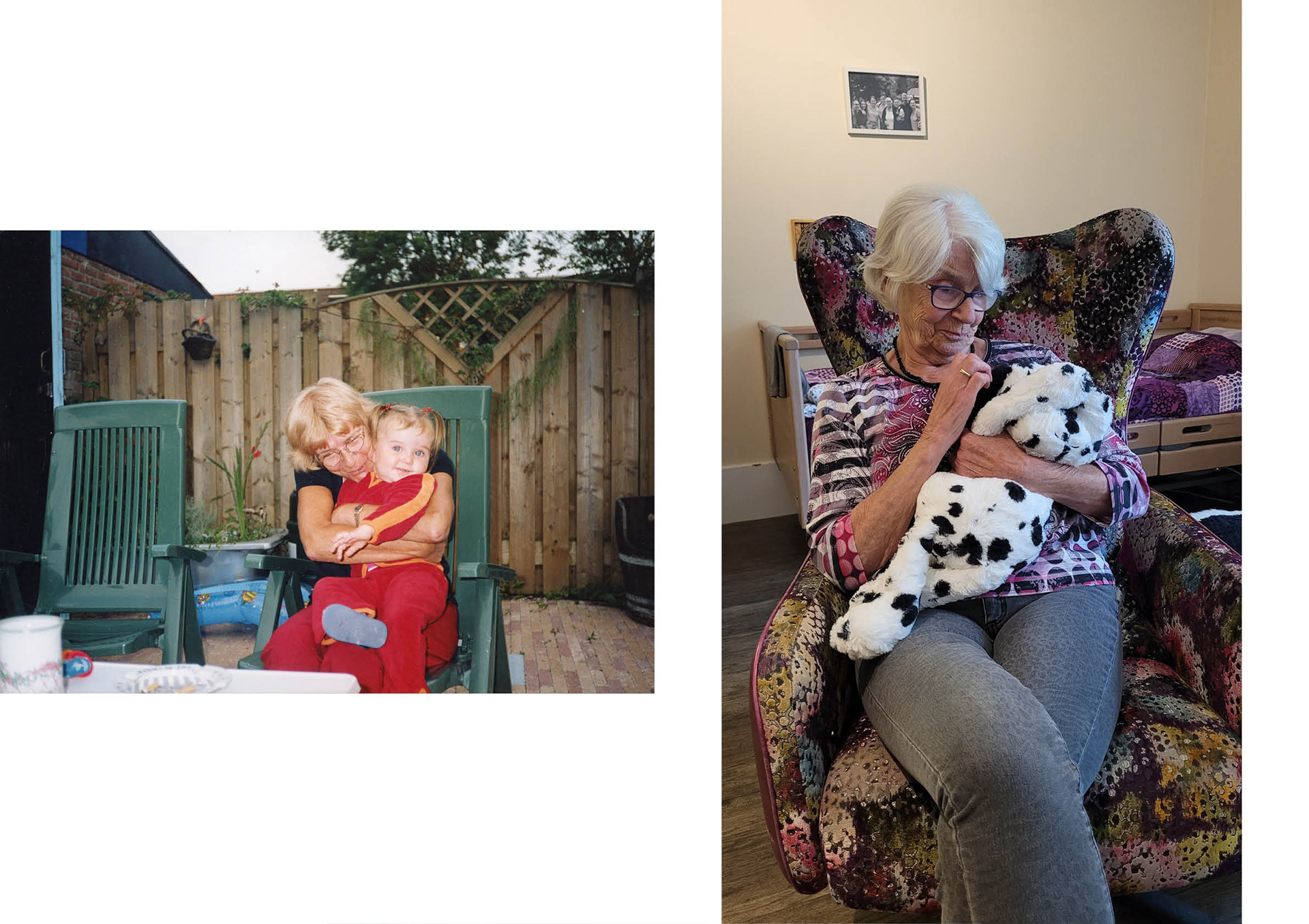 Een documentair audiovisuele installatie over de impact van vasculaire dementie op de familie. Deze installatie vertelt het verhaal van mijn oma met dementie en hoe wij daar als familie mee om gaan. Op de fotoparen is te zien hoe de band tussen mij en mijn oma is veranderd de afgelopen jaren. In de audio zijn fragmenten uit een gesprek tussen mijn moeder, mijn oom en mij te horen. We praten over de diagnose, oma's wensen en de euthanasiewet. Iedereen kon zijn eigen route in het doolhof bewandelen omdat elke vorm van dementie anders is en iedereen op een ander punt aanhaakt.